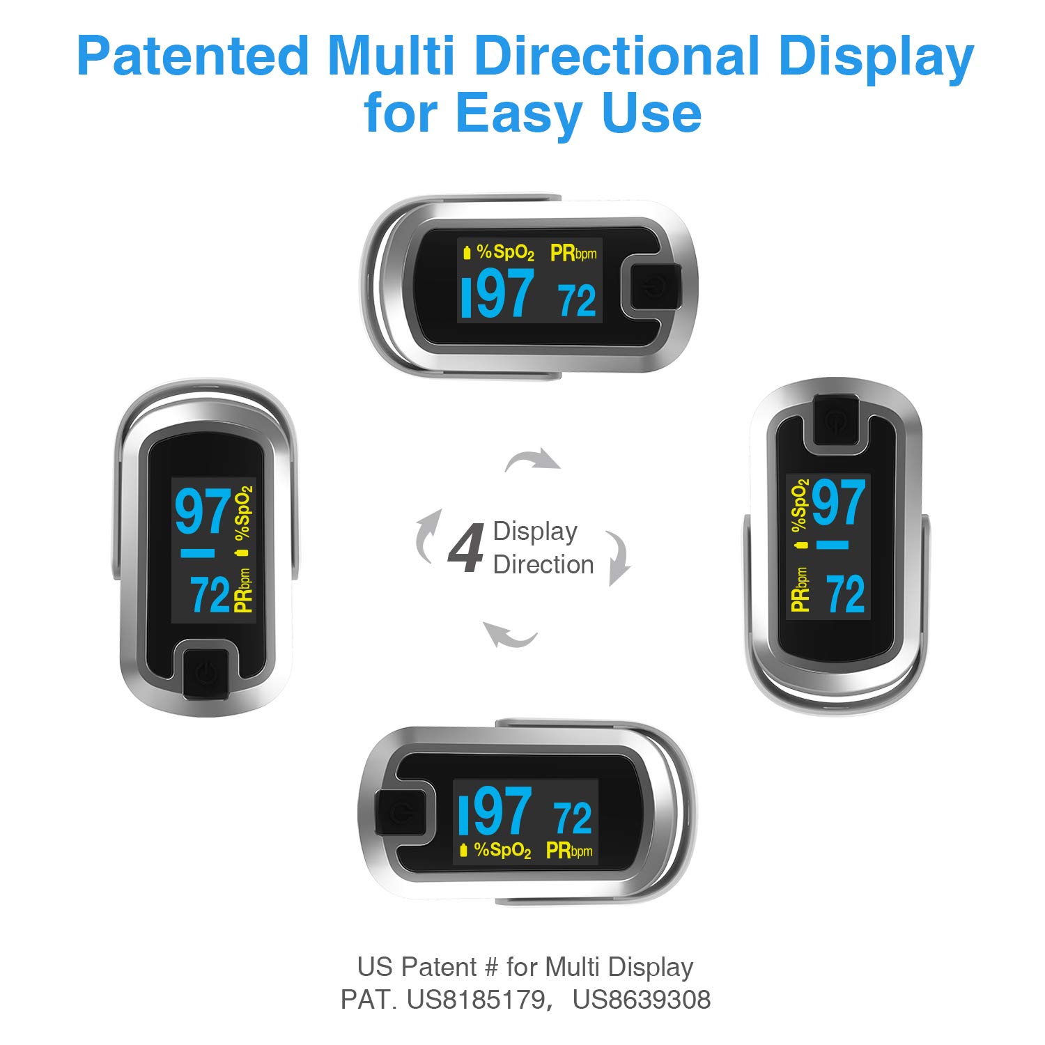 mibest OLED Finger Pulse Oximeter, O2 Meter, Dual Color White/Silver